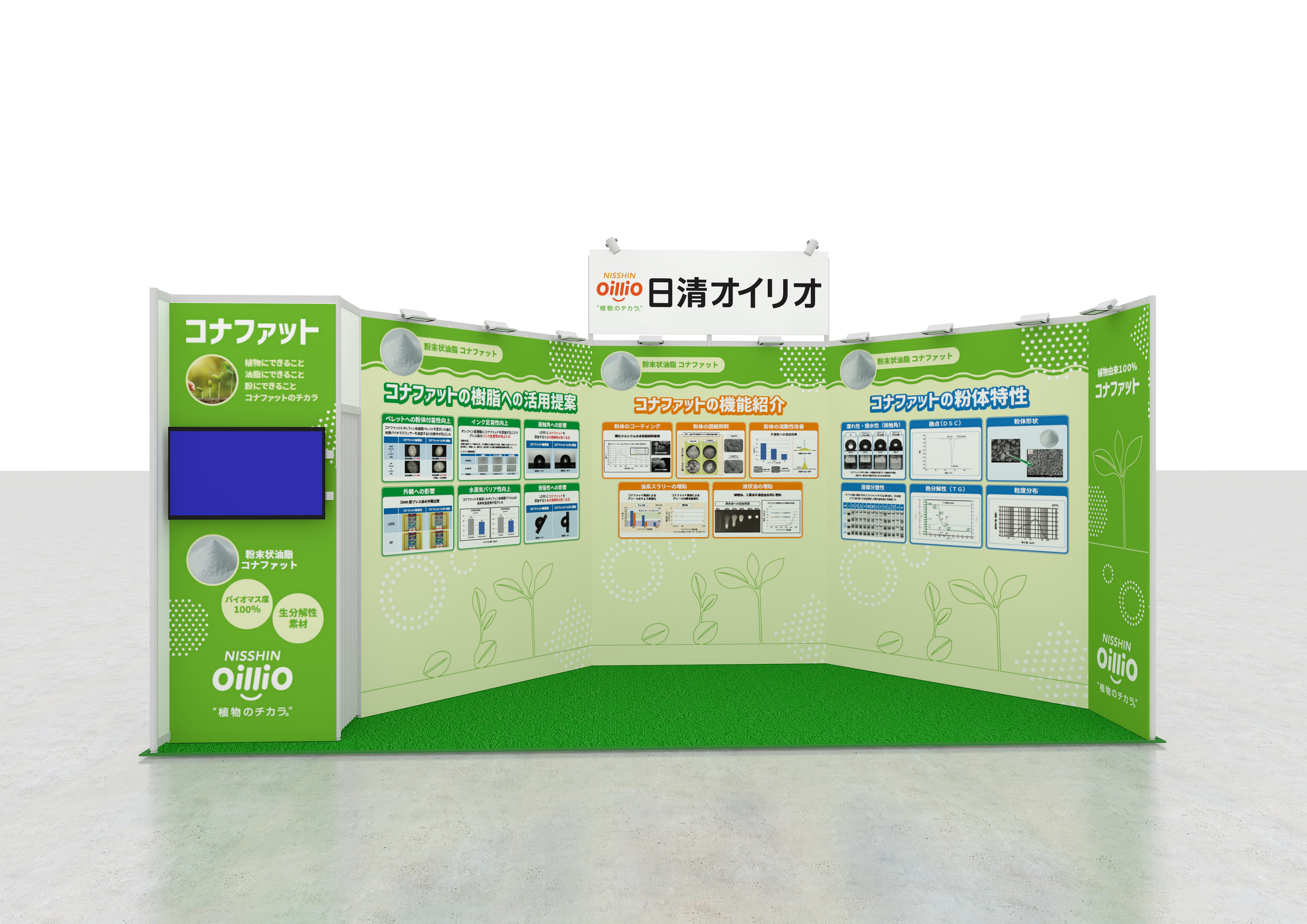 「コナファット」は、粉体の流動性改善・固結防止、樹脂への添加による撥水性・バリア性向上といった特長を持ち、樹脂・包材・油剤など主に非食用の分野で活用いただける環境配慮型素材です。ぜひ当社ブースまでお立ち寄りください。